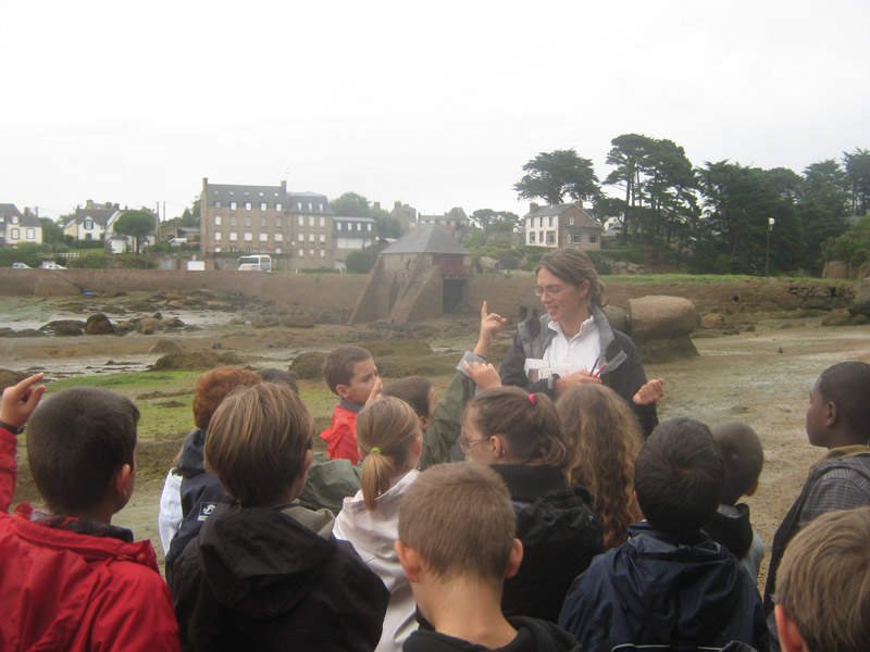 Animation de Marie Le Scanve de la Maison du Littoral de Perros autour des Moulins à marée de Ploumanach et Trégastel. Avec la classe de CM2 de Lannion.